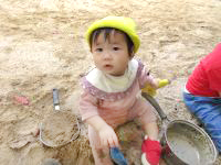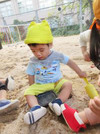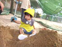 晴れた日は、庭に出て遊んでいます。砂場で遊んだり、