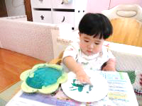クリスマス製作をしました。 紙皿に絵の具で色をつけたり、シールを貼ったりして クリスマスリースを作りました。 シールを貼ることに少しずつ慣れ、 保育者が少し台紙を折っておくと、 台紙からシールを取って貼ることができるようになりました。