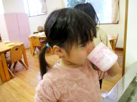おやつの後にうがいを始めました。