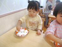 手のひらで丸めたり、指先で小さくちぎったりして楽しむことができました。