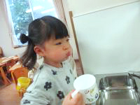 おやつの後にうがいを始めました。
